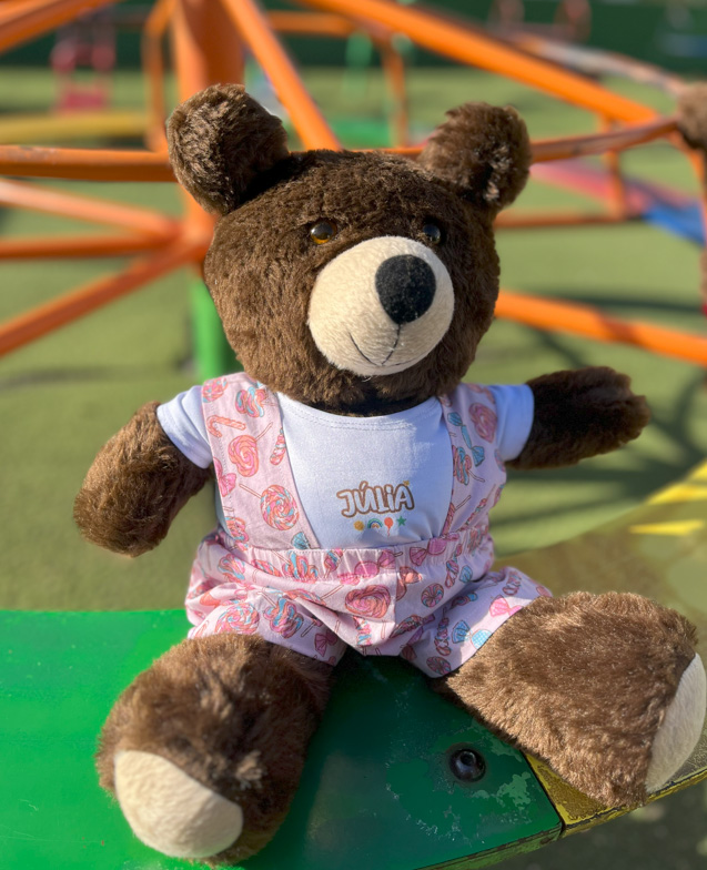 Com sua camisa personalizada com o nome da criança, Tito se torna um companheiro único, feito sob medida para acompanhar momentos de brincadeira, descobertas e aconchego.